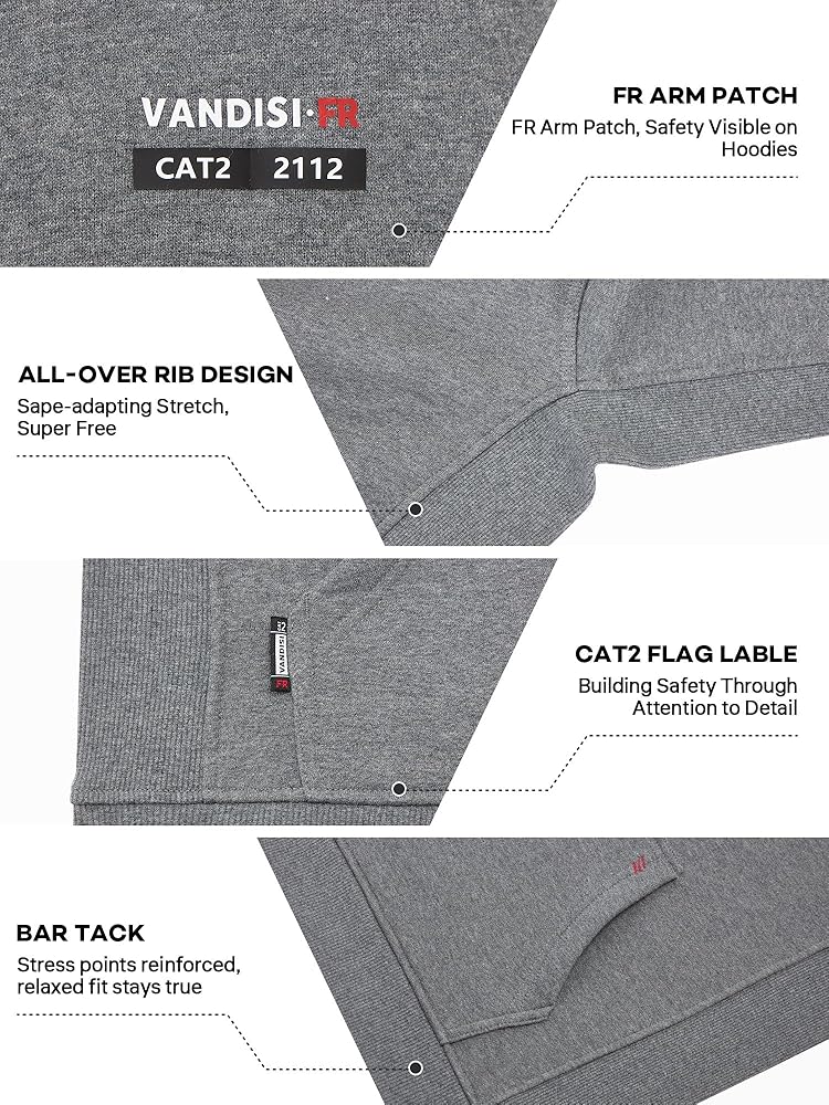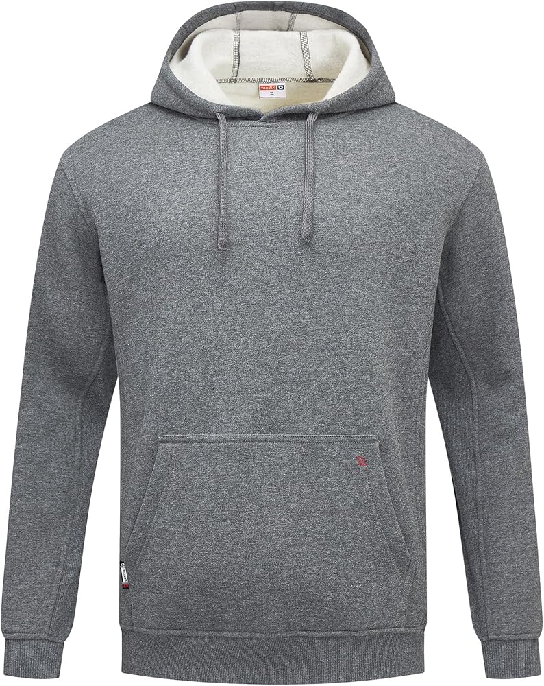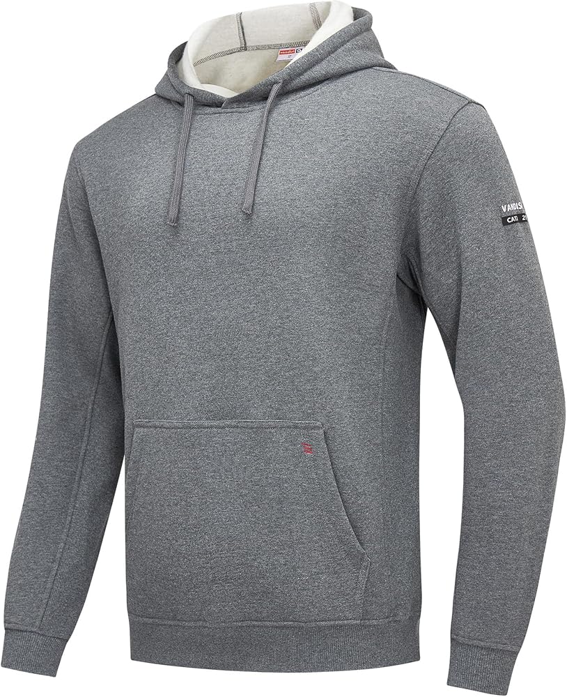 【Practical Styling】This men's flame-resistant pullover can be layered over a quick-dry work T-shirt .The flame-resistant fabric blocks high-temperature debris and electrical sparks. The pullover design allows for quick on/off without snagging equipment. The kangaroo pocket keeps essentials accessible. Ribbed cuffs prevent sleeve entanglement, while the fitted hem blocks drafts for enhanced safety and practicality.