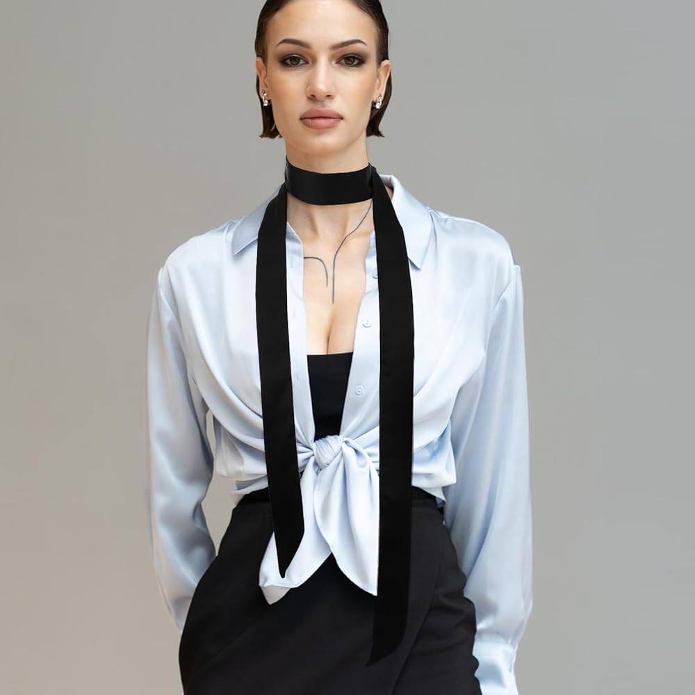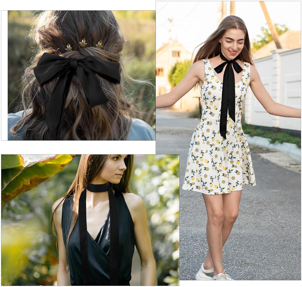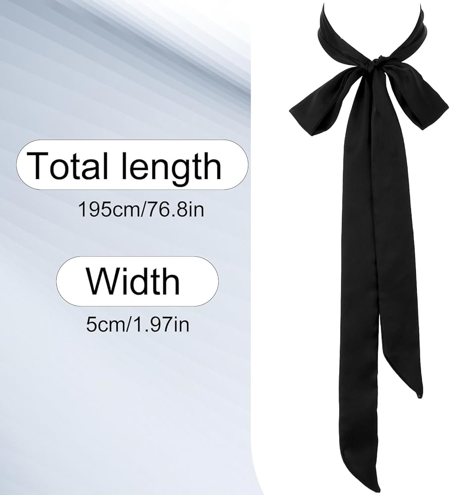 Ribbon Black Chiffon Scarf Necklace: Measuring 76.77 inches by 1.97 inches, this lightweight scarf can be styled as a chic necklace, offering a unique twist to your fashion ensemble