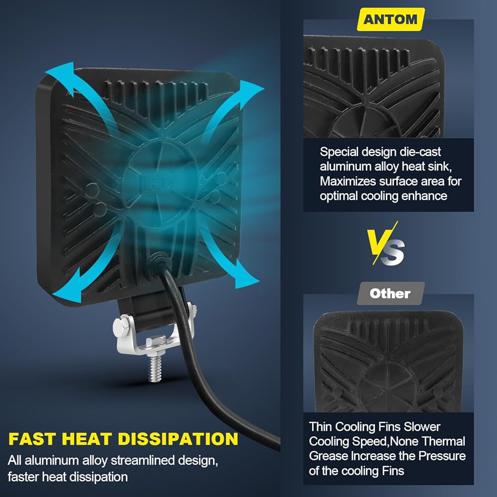 Excellent Performance Anti-shock, anti-rain, anti-fog, waterproof IP68 level, ready to use, and high bright spot lamp, wide distance to project. IP68 sealing, rubber gasket and silica gel gasket will keep the sealing performance, and die casting aluminum alloy shell protection makes an excellent anti-shock performance and dustproof.