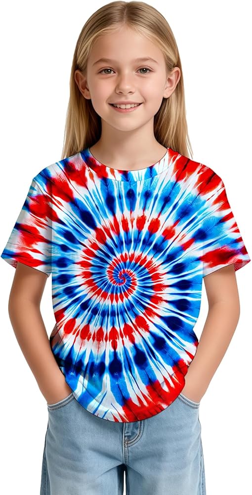 Multiple Features:Children's tie-dye T-shirt with loose short sleeve design, classic round neck, easy to wear, that resists pilling and retains its shape. Ideal for tie-dye fun, school days, and family moments, adding a splash of color to every occasion