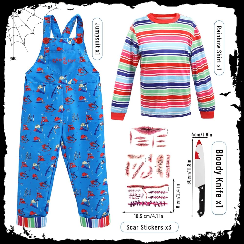 Material: Scary killer doll costume is made of high-quality polyester and cotton materials, soft & breathable, wearing this horror costume allows your kids to stand out on Halloween