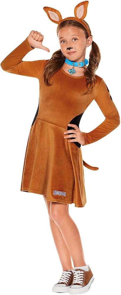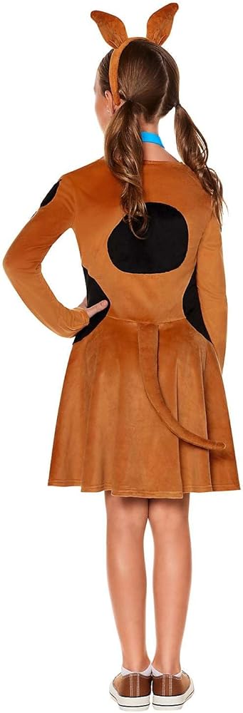 Ready to solve a mystery? This officially licensed Scooby-Doo dress costume has everything you need to look just like everyone's favorite pup! Featuring a super-soft brown dress with long sleeves and an attached tail, this outfit is a must-have for any fan. An authentic Scooby-Doo collar and ears complete the look!