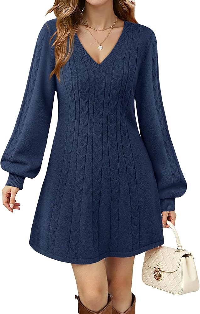 Features:The autumn 2025 women's collection features lantern sleeves, V-neck and low-neck designs, complemented by ribbed woven textures, combining elegance and comfort. The high-waisted royal line cut, combined with the swaying flared skirt and the layered pleated A-line silhouette, creates A fitted and well-fitting look. Solid colors charm your length, elegance and grace. The fabric is soft and elastic, suitable for all body types, and can easily handle various casual occasions in daily life.