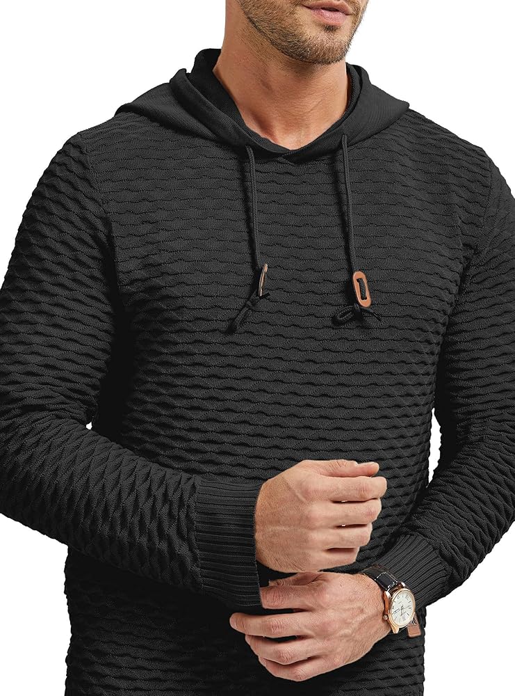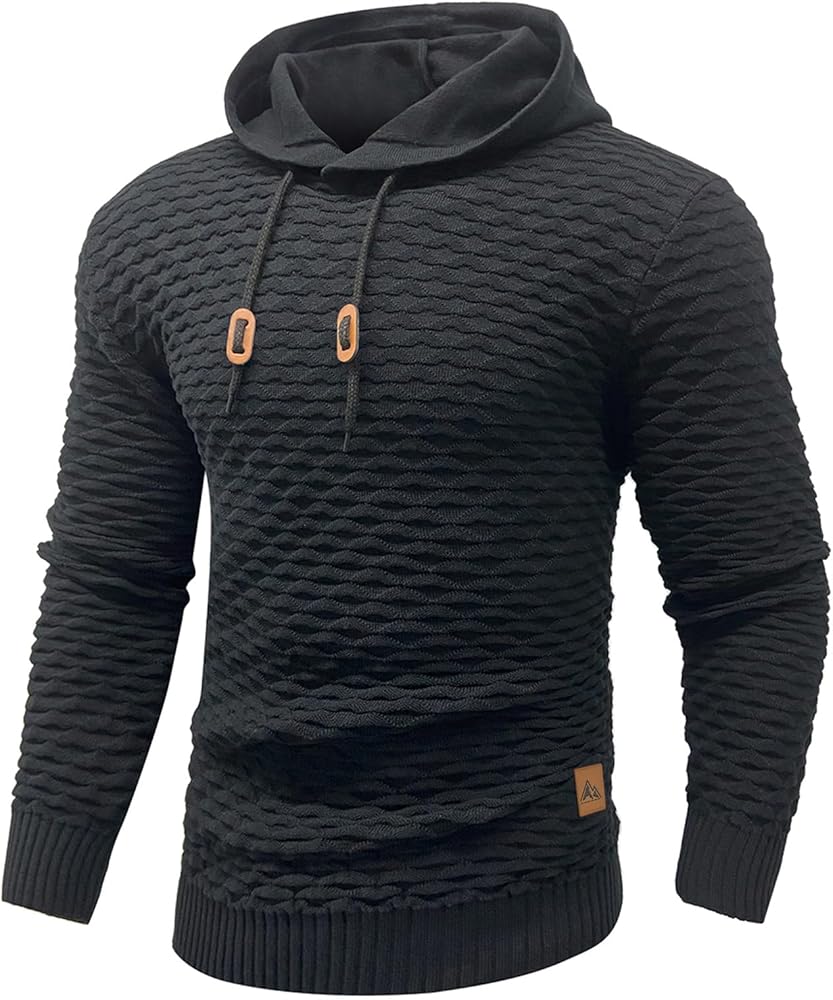 【𝐒𝐥𝐢𝐦 𝐅𝐢𝐭 & 𝐀𝐝𝐣𝐮𝐬𝐭𝐚𝐛𝐥𝐞】Designed with a slim fit for a modern silhouette, this waffle-knit hoodie features adjustable leather drawstrings for a customized fit. The ribbed hem and cuffs enhance comfort and style.