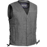 Multifeatured Vest for Men: The motorcycle denim vest for men contains two inside hidden pockets made of special heavy-duty textile with built-in snaps closing, 2 zippered outside pockets, an Inside cell phone pocket, and a front metal snap that protects wind and rain while riding.