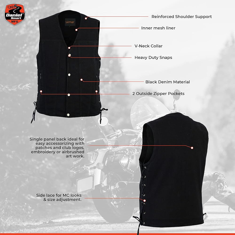 Satisfaction Guaranteed: Daniel Smart's objective is to ensure that you are completely happy with our Products. Our motorcycle denim vests come with a money-back satisfaction guarantee. We are very proud of our product and encourage you to contact us if you have any problems kindly inform us, and we will provide you with a refund without any questions.