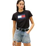 Introducing Tommy Hilfiger's iconic women's t-shirts, featuring the signature printed flag logo detail and crafted from 100% cotton for a soft hand feel and comfortable fit. These graphic tees are the epitome of everyday style, perfect for effortlessly elevating your casual look. Durable enough to withstand serious wear, Tommy Hilfiger's graphic t-shirts for women are breathable, crisp, and lightweight, ensuring you stay cool and comfortable every time you slip them on. The special wash process gives these crewneck graphic tees their softness, making them a solid basic option for any wardrobe. Pair them seamlessly with your favorite Tommy Hilfiger shorts, pants, jeans, or jackets for versatile styling options suitable for any occasion, whether it's a casual outing or a formal event. Ideal for daily wear, work, school, events, vacation, or sports, these women's shirts are a wardrobe essential. Treat yourself or surprise a loved one with this timeless piece, perfect for mothers, sisters, girlfriends, wives, daughters, or friends. Elevate your everyday style with the unbeatable quality and sophistication of Tommy Hilfiger's women's shirts.
