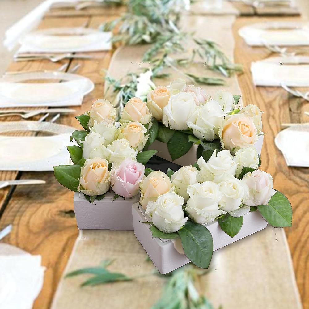 3 Pack White Porcelain Flower Vases Handmade, Ceramic Rectangular Floral Centerpieces for Dining Table, Home Décor, Wedding, Total Length 24 inches, No Leak (White)
