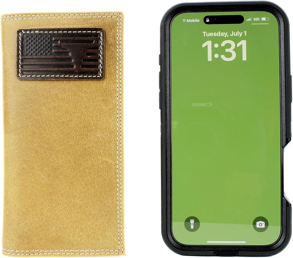 The American Bison Rodeo Wallet with American Flag & Bison Skull blends patriotic pride with frontier strength in a design that stands tall. Crafted from genuine leather, the embossed patch showcases a powerful bison skull layered over the American flag, finished with bold white double-stitching along the edges. Inside, the long rodeo-style wallet provides generous storage with 12 card slots, a clear ID window, and 4 vertical currency compartments. A dedicated pen holder makes this wallet practical as well as stylish, keeping you prepared for the day ahead. Handsome, rugged, and built to last, this wallet only grows richer in character with age. Packaged in a wooden gift box, it's a ready-to-give piece of functional craftsmanship for men who live with pride in their heritage and values.