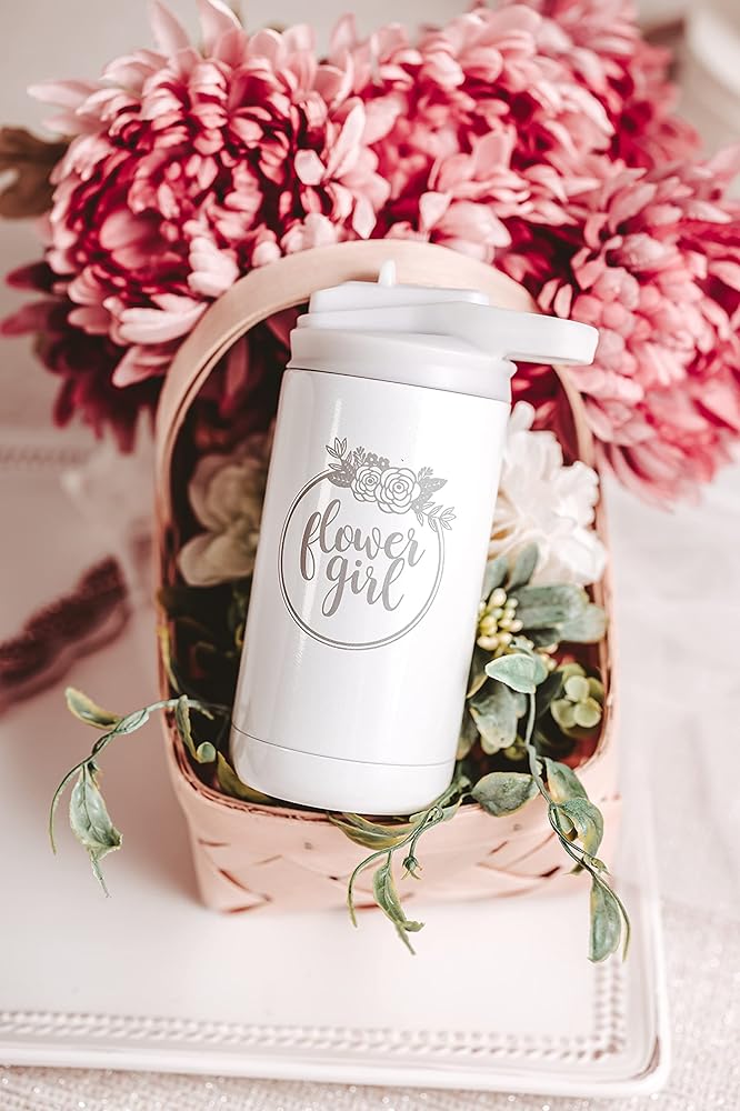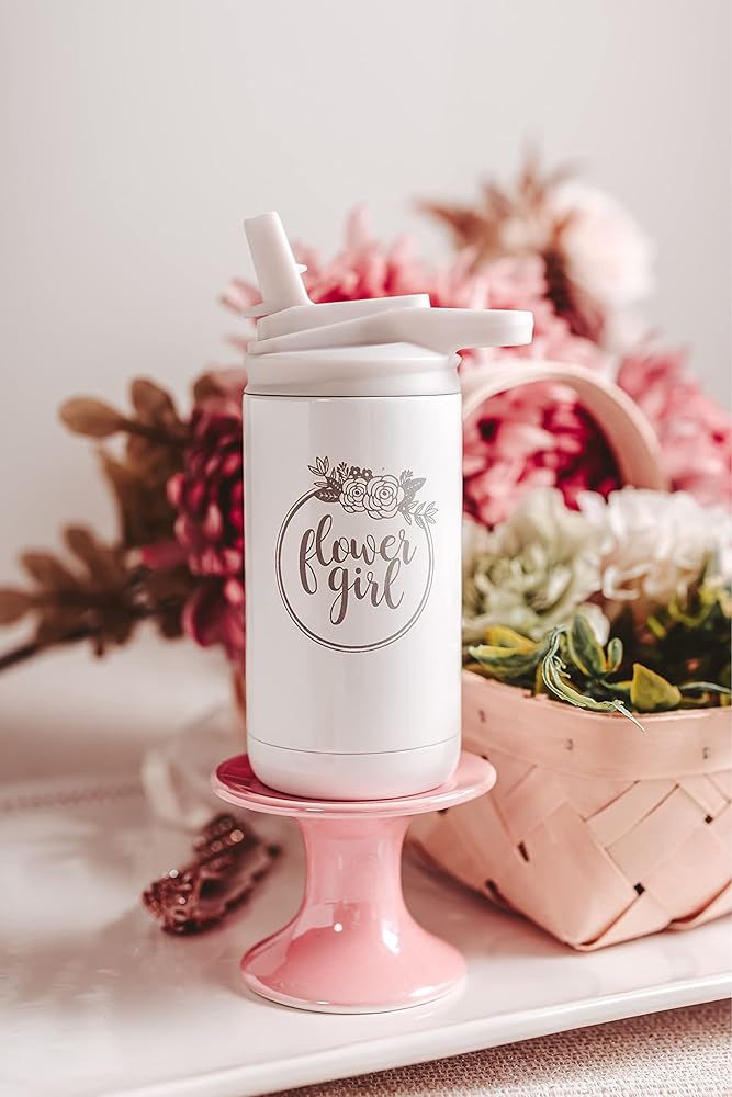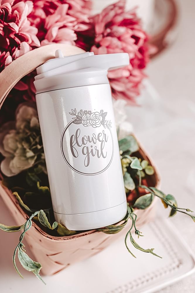 Our Flower Girl tumblers offer a simple and classic design that compliments all wedding styles. She will love to show off his new gift from the bride and groom in all the pictures. Hand washing is recommended