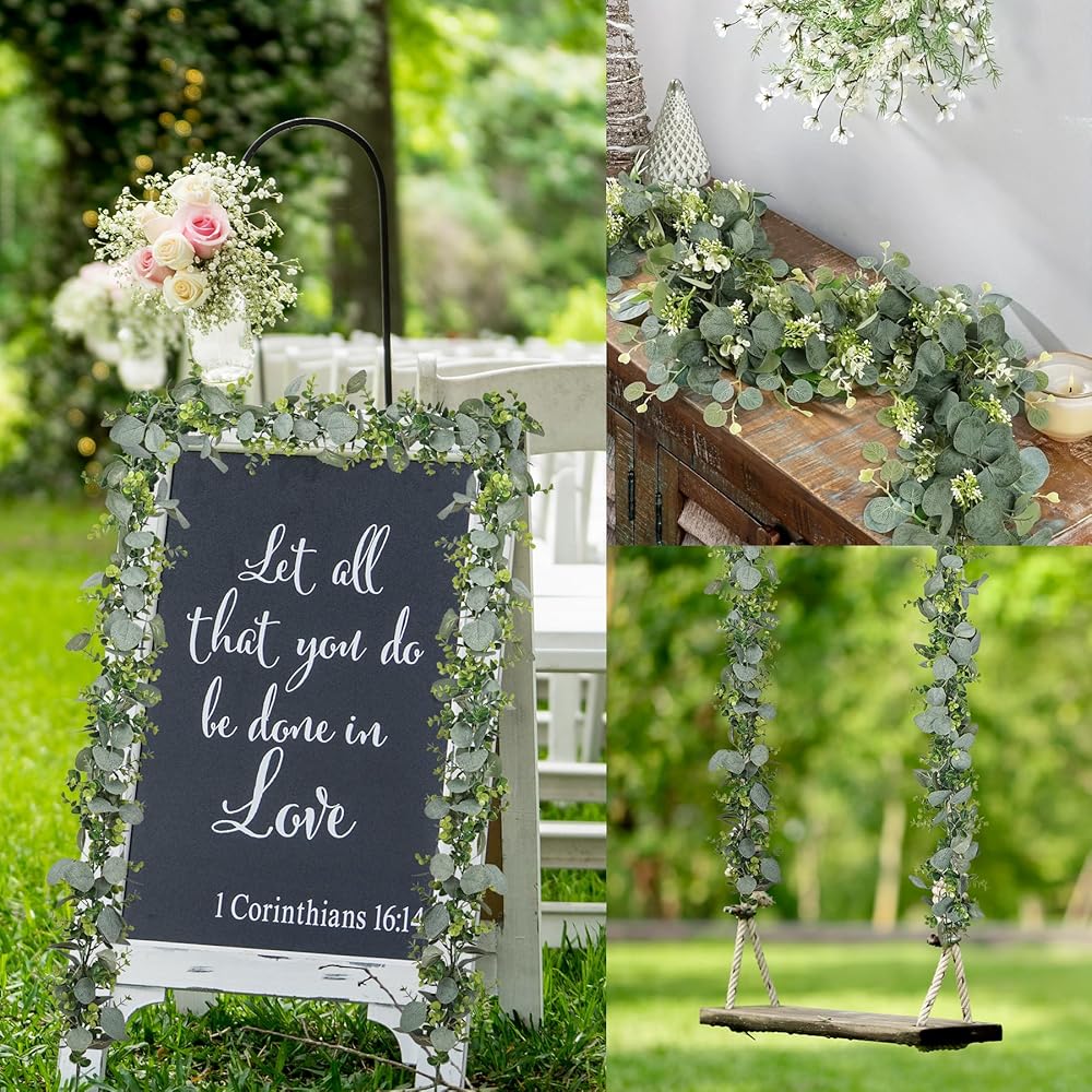 【Realistic Garland Design】: Our eucalyptus garlands mix eucalyptus leaves and boxwood leaves together, which makes the whole vine look more realistic, dense, and filled with rich layers. Gypsophila is hidden in the leaves, adding bright spots to the vines. ensuring a vibrant and full appearance year-round.