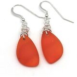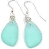 These beautiful handmade drop earrings have sterling silver hooks and a handmade silver knot above each piece of recycled sea glass. Each piece of recycled sea glass is slightly unique in size, color, and opacity; nevertheless, very much what you see in the Aimee Tresor Jewelry product shots. Each purchase includes an inspirational card within each gift box, making your gift or purchase even more special. These natural, nautical, earrings are perfect for yourself or given as a gift. The recycled sea glass eclipse earrings are 21mm x 13mm. A little larger than a dime. Sea glass may have tiny bubbles within the glass and very slight color variation than represented in the picture. This is normal and adds, unique, bubbly, beachy charm. **ALSO AVAILABLE IN SWEETHEART PINK BLUSH, STARRY NIGHT COBALT BLUE, AND DUSTY PERIWINKLE BLUE and DEEP OCEAN BLUE. Please take care not to wear in pool or hot tub. We want you to enjoy your Aimee Tresor Jewelry for years to come!