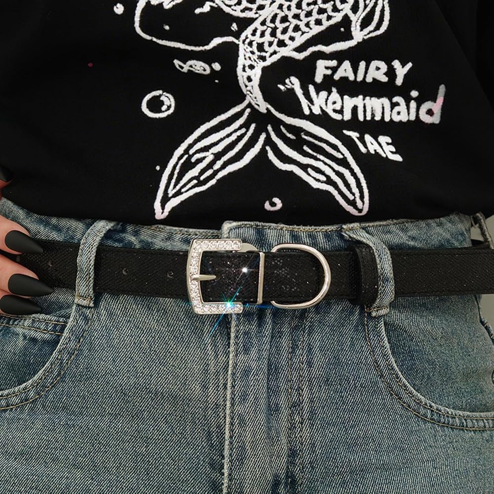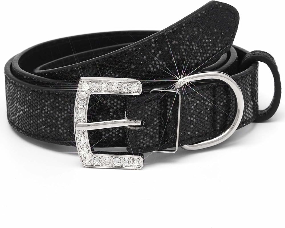 STYLISH DESIGN: Glittery fashion belt available in 4 stunning colors (white, black, pink, purple) with an elegant rhinestone-studded buckle for a glamorous look