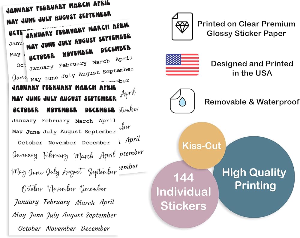 This listing is for 3 sheets of fun months of the year stickers. They are perfect for undated monthly and weekly planners or to change the months in a dated planner. Use in planners such as journals, Bujos, EC Life Planners, Vertical Planners, wall calendars, and any paper planning system. 144 Stickers in multiple fonts.