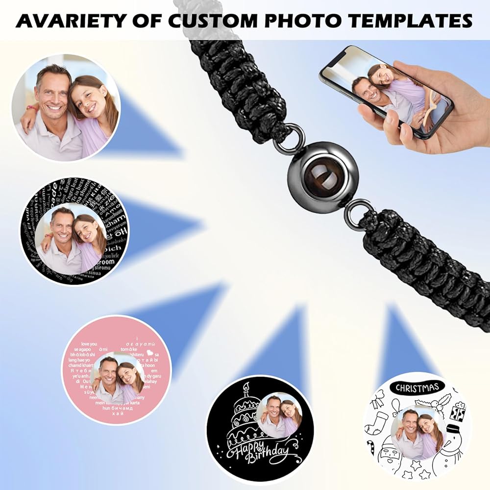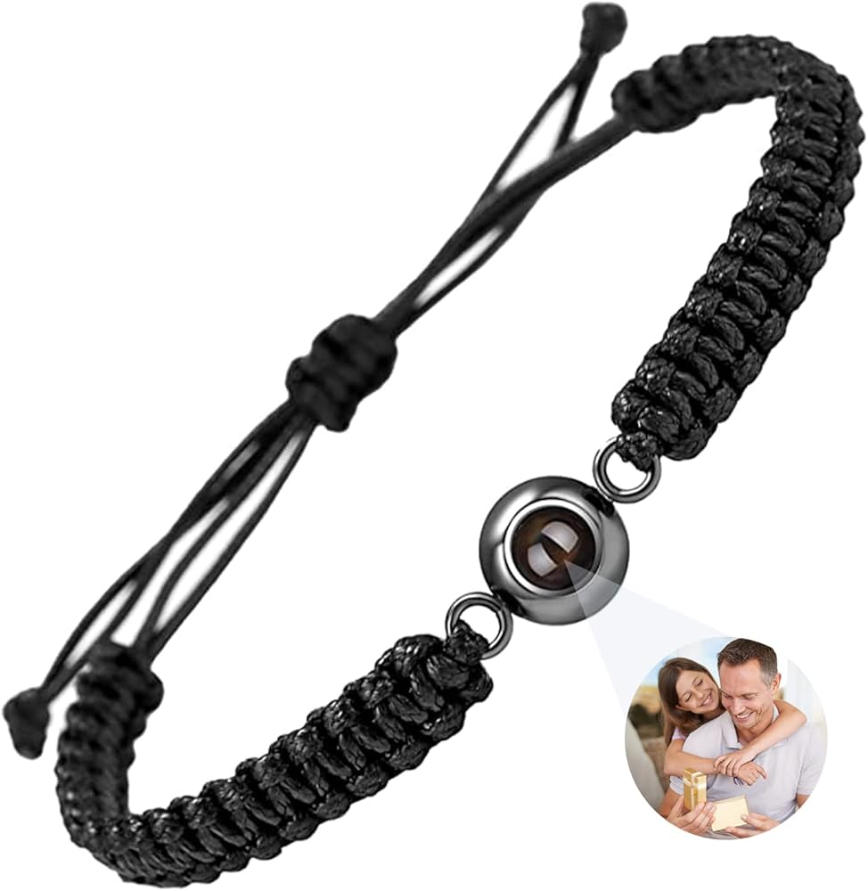 🎁【Custom Handmade Bracelet】:Each wax rope bracelet and customized circle pendant is expertly handmade by skilled artisans according to your order specifications, ensuring a one-of-a-kind piece,projection bracelet features an adjustable wax rope that won't deform or cause an anti-allergy coating on the circle pendant, and a high-definition engraved projection stone that won't blur or fade You can wear it while showering or swimming without damaging it.
