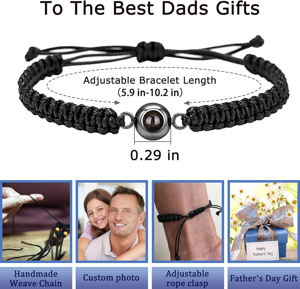 🎁【How to Custom】:Click the "Customize Now" button to customize,Preserve your dad beautiful memories and important moments with this photo bracelet projection.