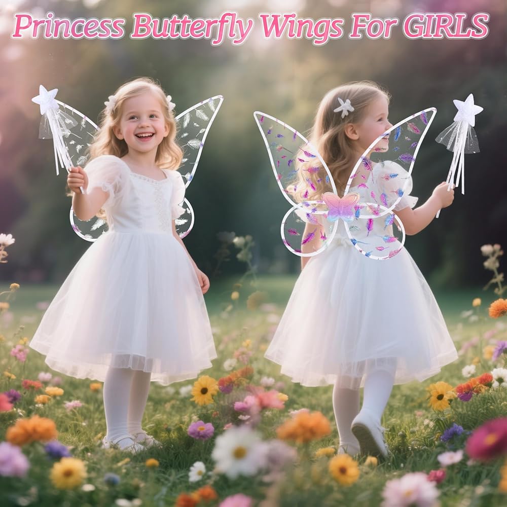 Fairy Wings Adult Women Girls, Princess Butterfly Wings for Girls Halloween Costumes Angel Wing with Fairy Wand for Cosplay Dress Up
