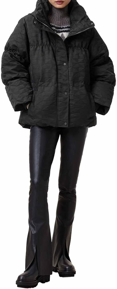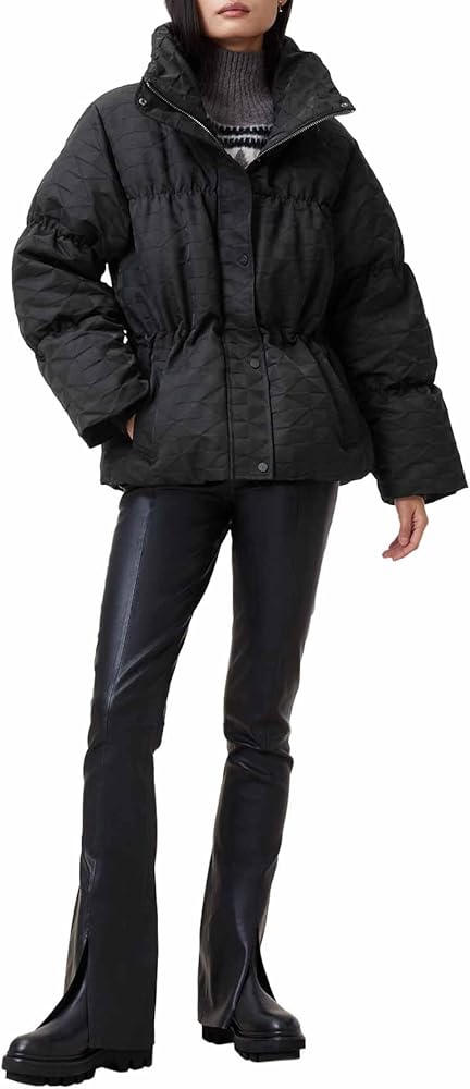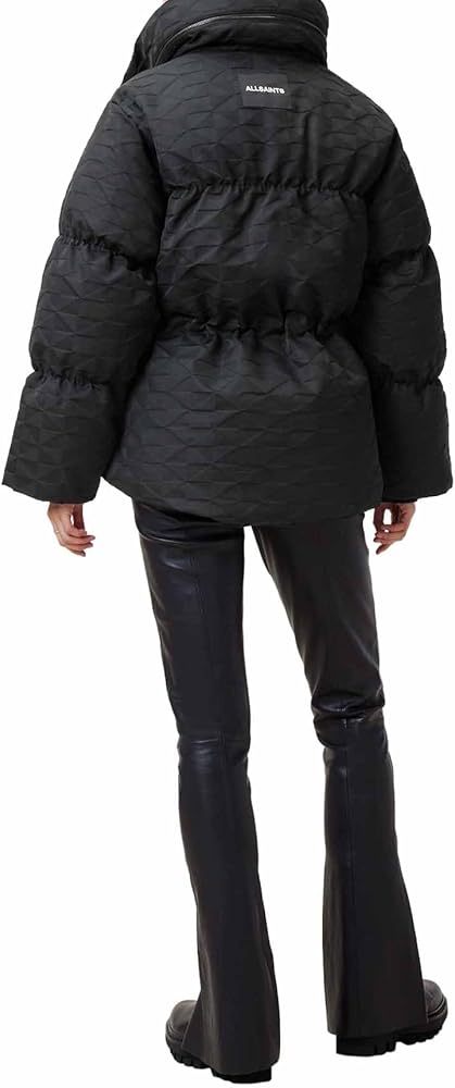Woven with a geomteric jacquard, an oversized puffer silhouette, with adjustable elasticated waist. Zip around neckline with a hidden hood inside. The style has ribbed cuffs hidden under sleeves and a branded back label with gross grain tab and branded D-ring. THIS JACKET IS DESIGNED FOR A LOOSE FIT WITH DROPPED SHOULDERS