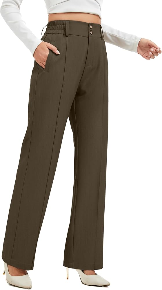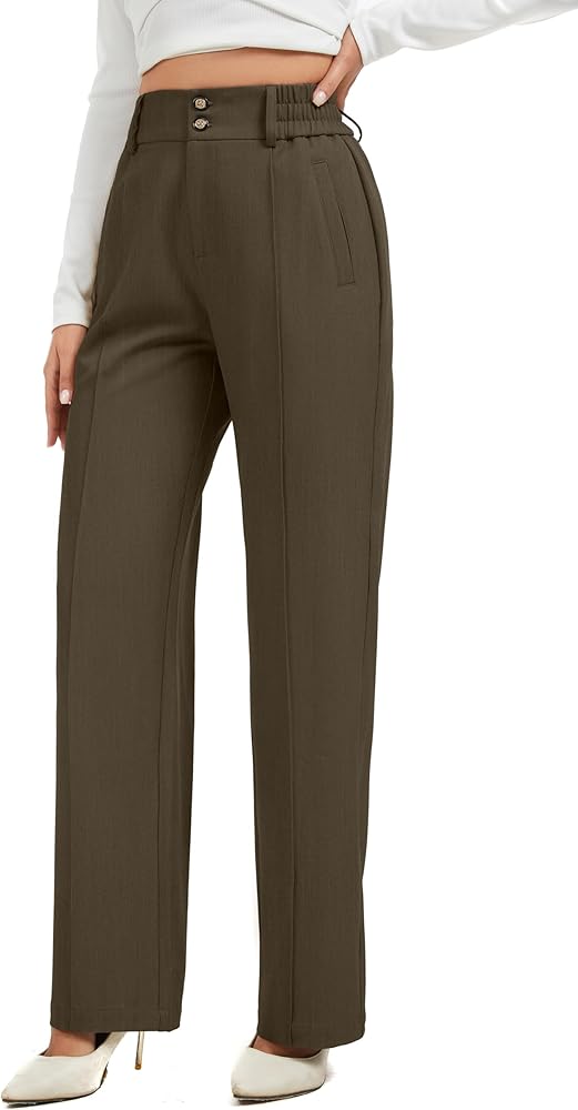 FEATURE -- High Waist Wide Leg, Double buttons, Elastic Waist, Classic Design