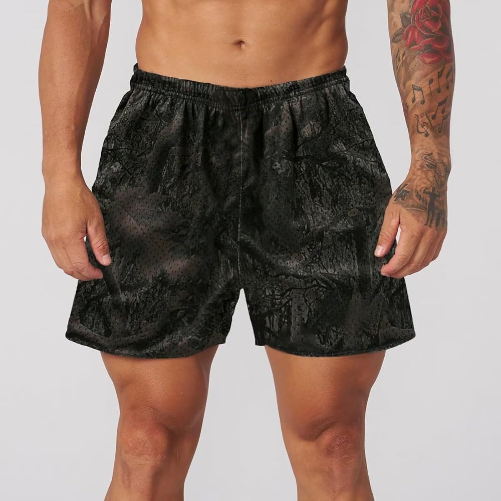 Stylish Camo Print:Showcasing a unique camouflage tree branch pattern, these shorts bring a bold, rugged outdoor look, perfect for streetwear, sports, or adventure lovers.