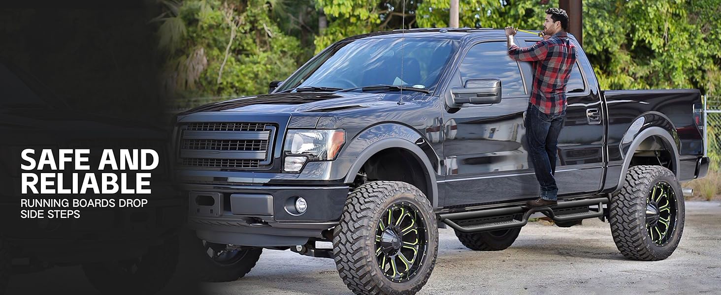 【Compatibility】: Two Stairs Design Drop Running Boards are compatible with 2009 2010 2011 2012 2013 2014 Ford F150 F-150 Super Crew Cab (4 Full-Size Doors). If you are not sure about your model, please check the cab dimensions picture.