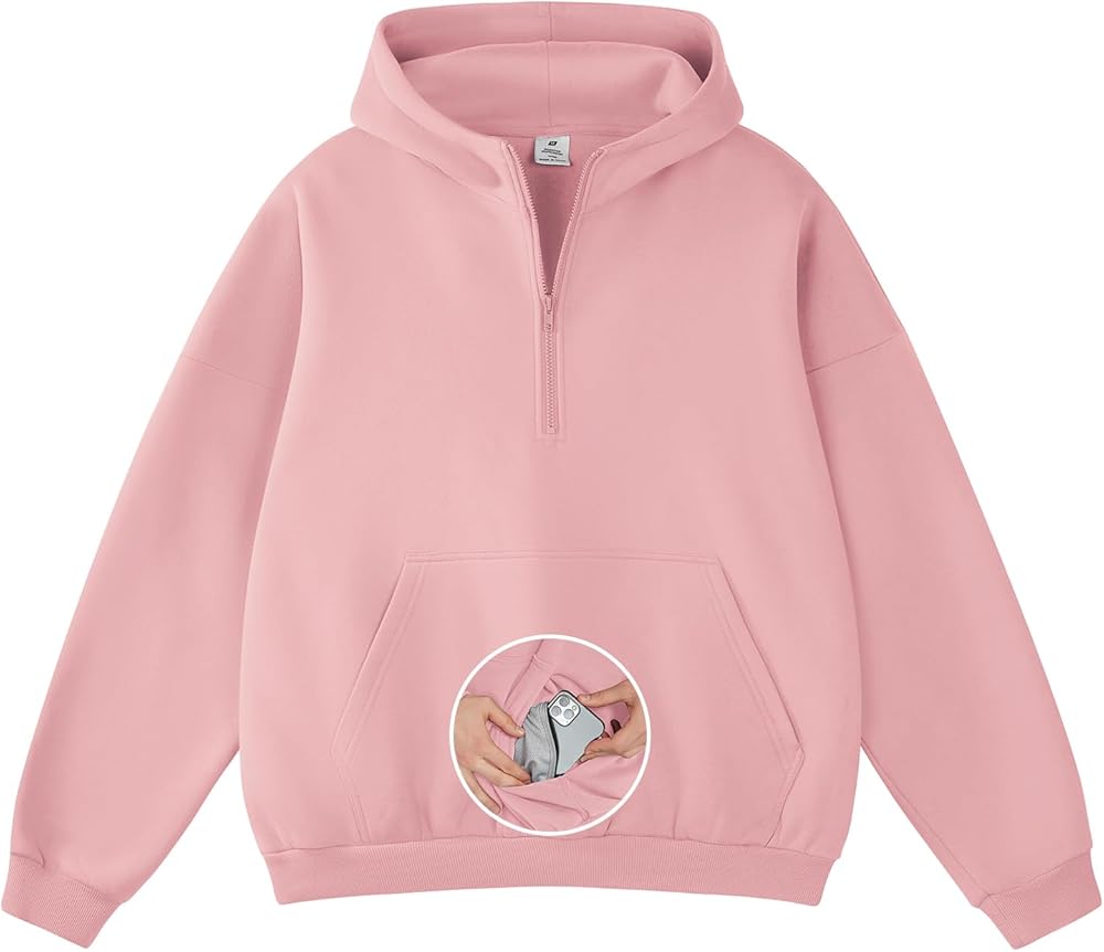 OVERSIZED DESIGN: Features an oversized, loose fit with dropped shoulders for a streetwear look. The half-zip high neck design allows for adjustability, while the front zipper design prevents damage to makeup or hairstyles when putting on. The double-layered oversized hood provides extra coverage