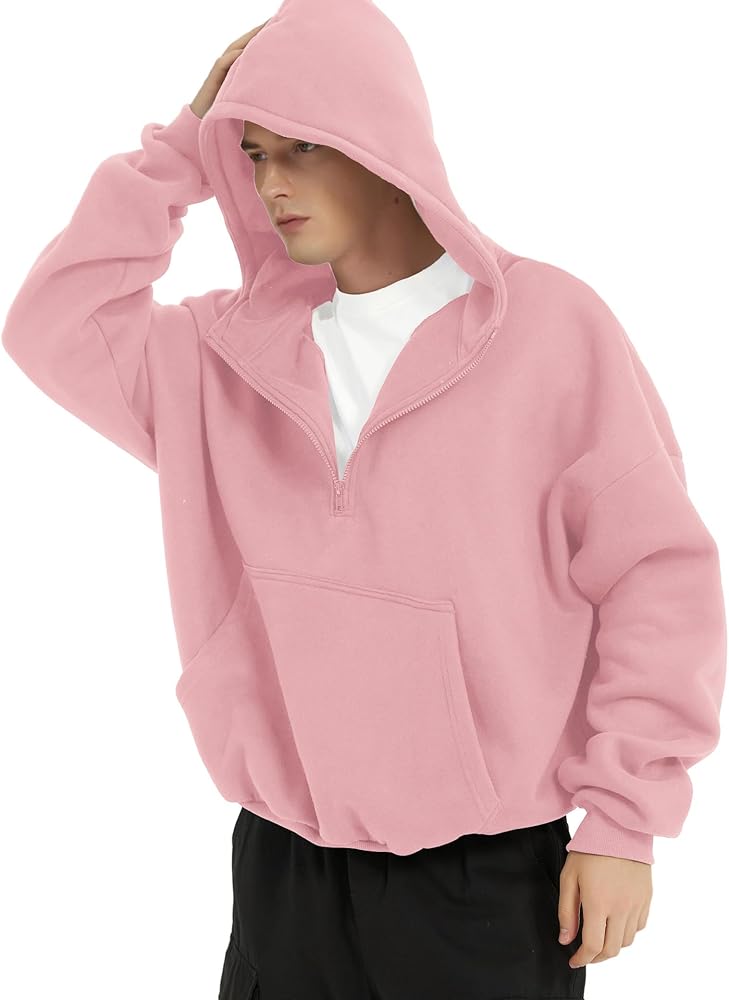 SOFT & COMFORTABLE: FAIABLE half zip pullover oversized hoodies are made from a 50% cotton and 50% polyester fleece blend with a cozy cotton fleece lining for added softness and warmth for everyday wear. Ideal for everyday wear or workouts in fall and winter, offering all-day comfort without restricting movement