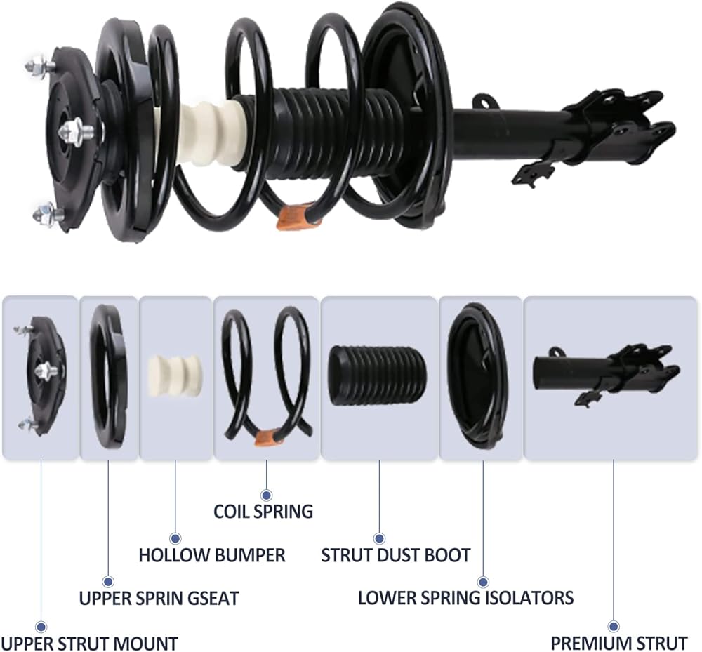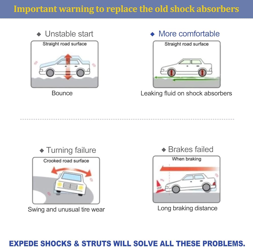 - Excellent material and manufacturing process build OE-std shocks struts. Solve bounce, swing, unusual tire wear, leakage. Improve braking distance and driving safety