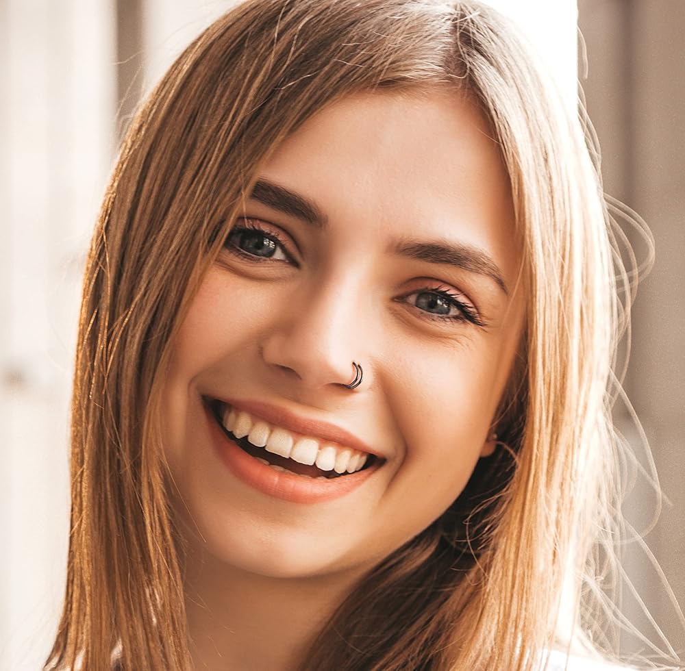 ❤ The Double Nose Ring Hoop is Made of Hypoallergenic Nickel-free Lead-free Metal type