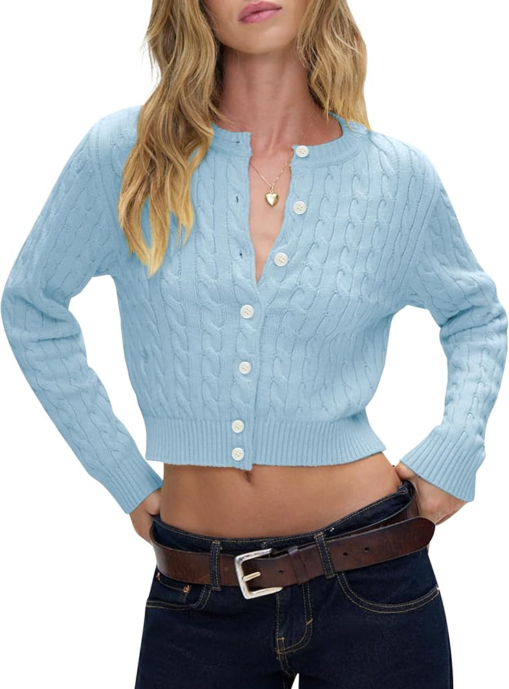 Feature: The cable knit cardigan sweater features with long sleeve, crewneck, button up closure, open front cropped cardigans for women, crop length fit with the tiniest part of the waist, makes you look more slim and tall.