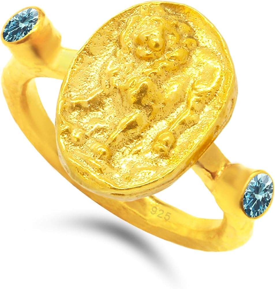 Caprixus signet rings for men & women - this handmade rings made of 925 sterling silver, it is a designer fine piece of art ring featuring a reproduction ancient bronze coin in 24k gold vermeil over base metal, comfortable and suitable for women & men