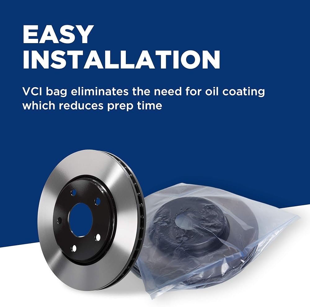 • EASY INSTALLATION -- Rotors are packaged in a Vapor Corrosion Inhibitor bag, eliminating the need for an oil coating which reduces prep time