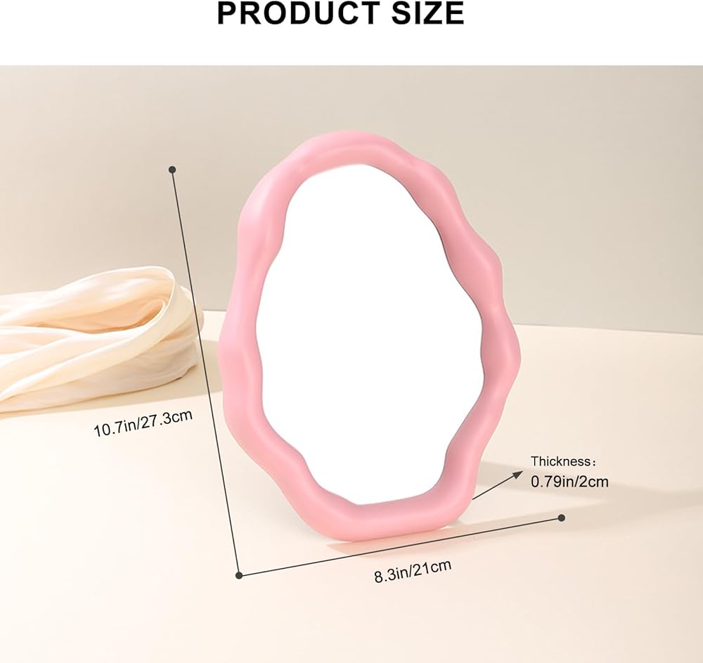 Wave Design: Our desk mirror has an irregular wave shape with hooks and brackets on the back, cute and eye catching, while adding an artistic touch to your home, as well as elegance and style to your room
