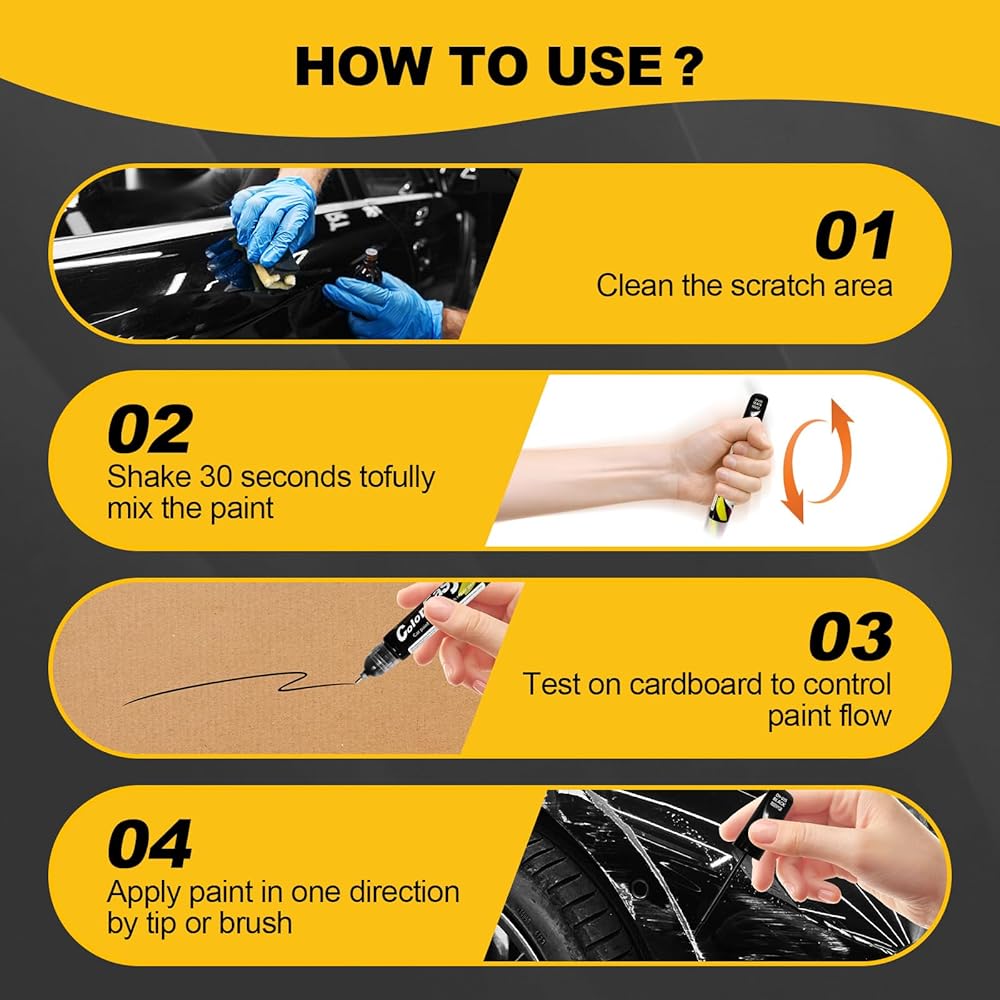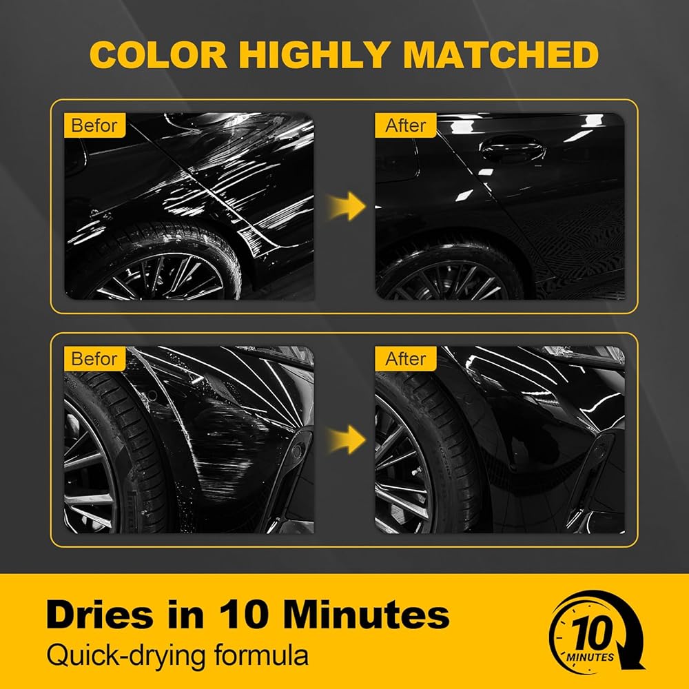 How to use: Simply clean the scratched area, remove loose paint, shake for 30 seconds, and apply evenly in one direction. For deeper scratches, apply layer by layer until filled. It will dry in about 10 minutes