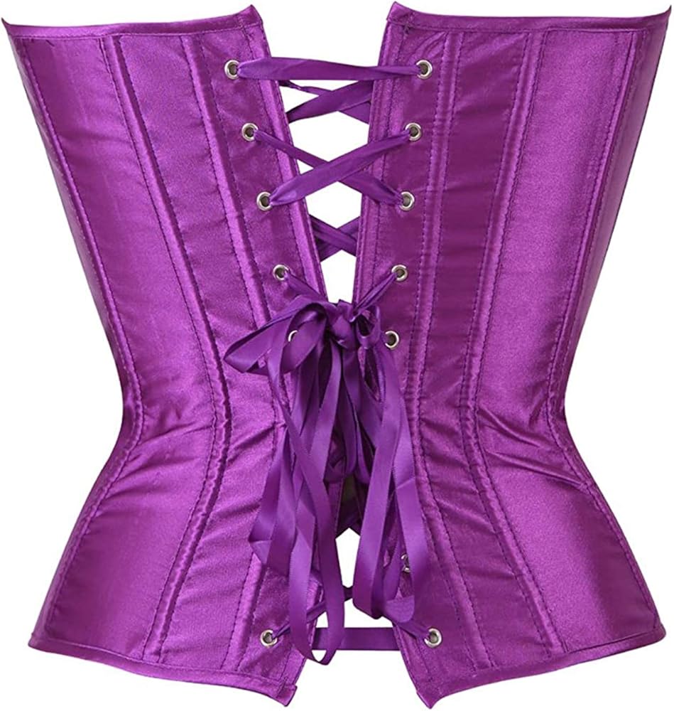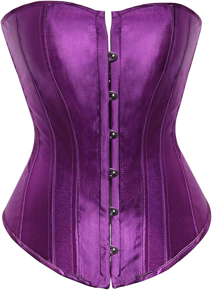 Turn heads with this satin overbust corset top—designed to sculpt and showcase your natural curves. A row of metal busk clasps at the front makes dressing simple, while the lace-up back fine-tunes compression for a secure, personalized fit. Flexible steel bones trace the corset's panels to define the waist and support posture without feeling rigid. The strapless sweetheart neckline flatters the bust and pairs effortlessly with skirts, jeans, or layered outfits. Whether you're building a costume or elevating a night-out look, this corset delivers shine, structure, and confidence.