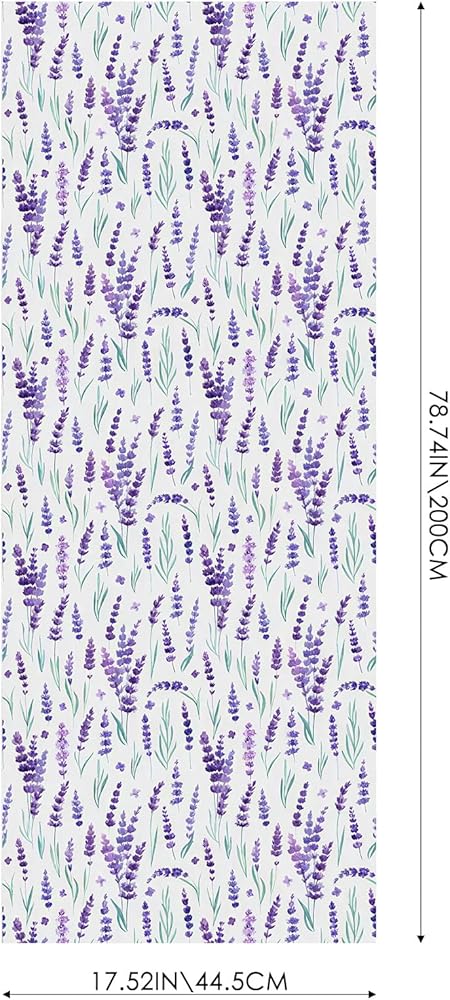 Romantic Purple Lavender Pattern: This privacy film for glass windows features a purple lavender pattern measuring 17.52 inches x 78.74 inches, romantic and beautiful, bringing a refreshing feeling to your space.