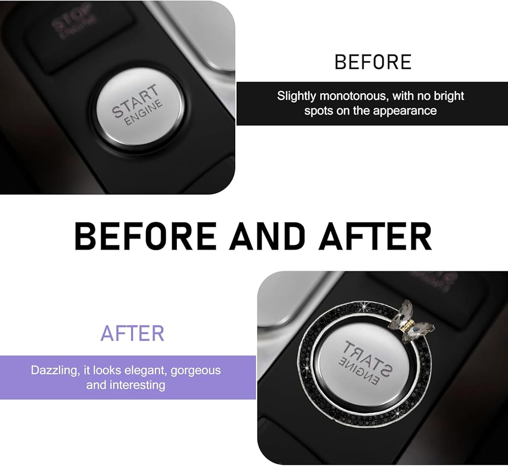 Premium Material: The push start button cover is made of high-quality alloy and glass rhinestones, anti-scratch and durable. Resists deformation and stays intact with daily use. Rhinestones are securely set, ensuring no easy falling off, maintaining a shiny, high-grade look for a long time.