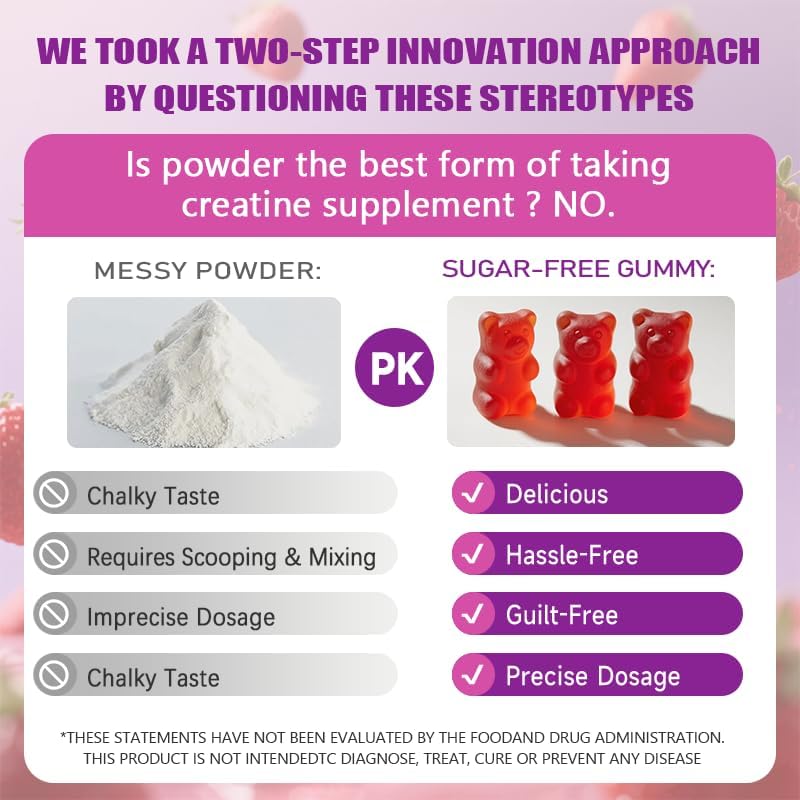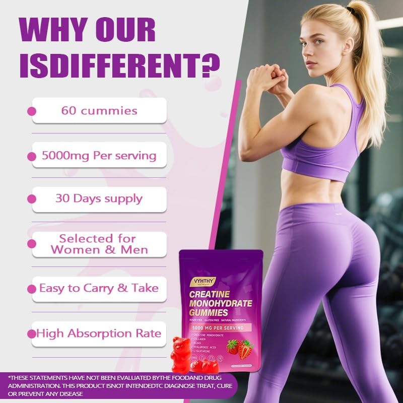 Maximum Efficacy On fitness And Physical Function Recovery For Women And Men: Our Creatine Gummies is packed with 5g of creatine with taurine, providing exceptional support for muscle strength, endurance, and recovery in and out of the gym. Perfect Choice for women and men.