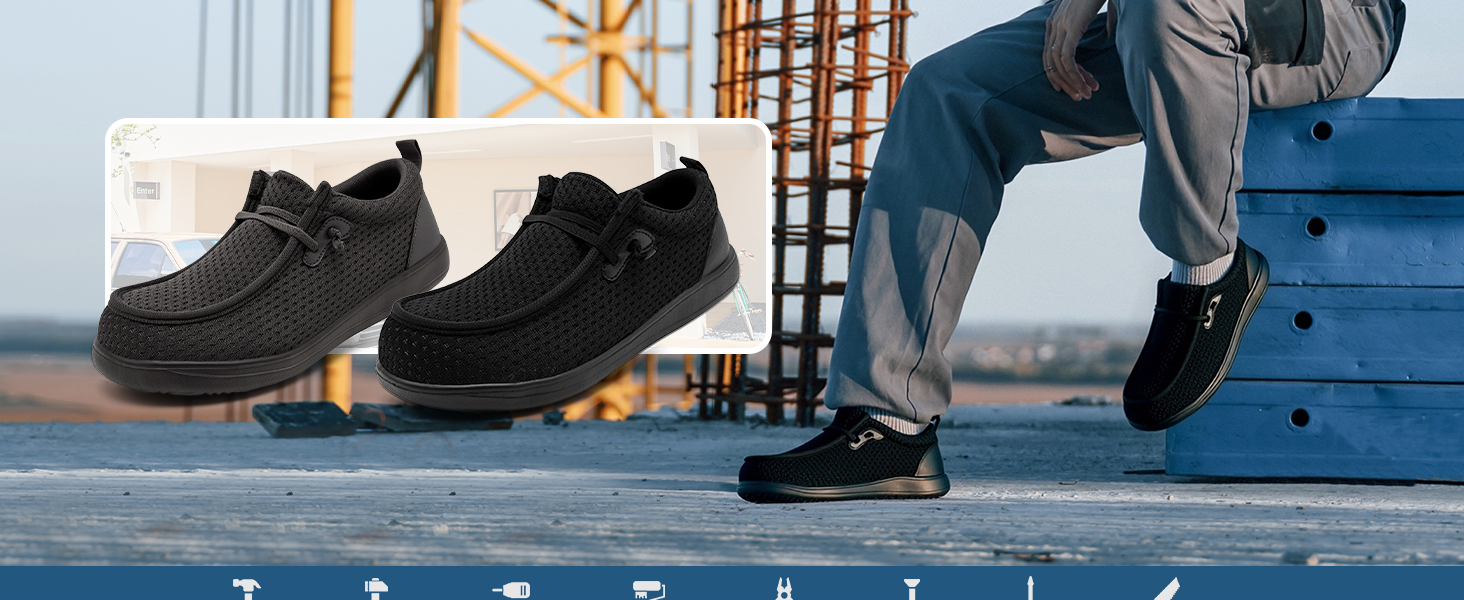 【Perfect for a Variety of Work Environments】 These slip-on steel toe work shoes are ideal for a wide range of professions and daily tasks. Whether you're working on construction sites, in warehouses, manufacturing facilities, delivery services, or doing home renovation projects, they provide the protection and comfort you need.