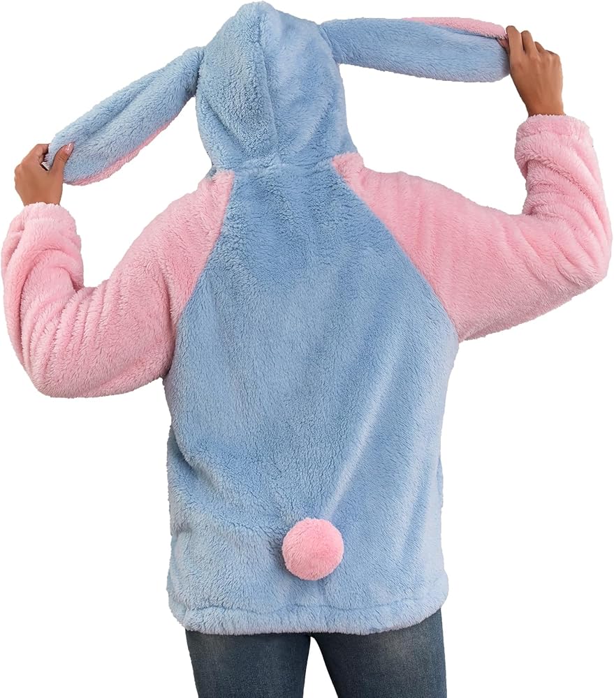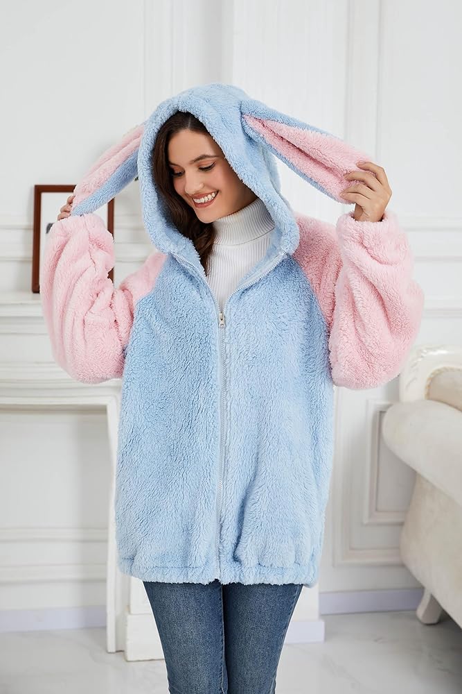 KAWAII DESIGN: This lovely animal hoodie has bear and bunny images, ears on the hood, and a small round tail on the back of the plush jacket. The image is vivid, cute and interesting. The hidden pockets make it look more fashionable and simple. When you wear it while walking on the street with friends or shopping in a store, everyone will look back at you and you will become the focus.