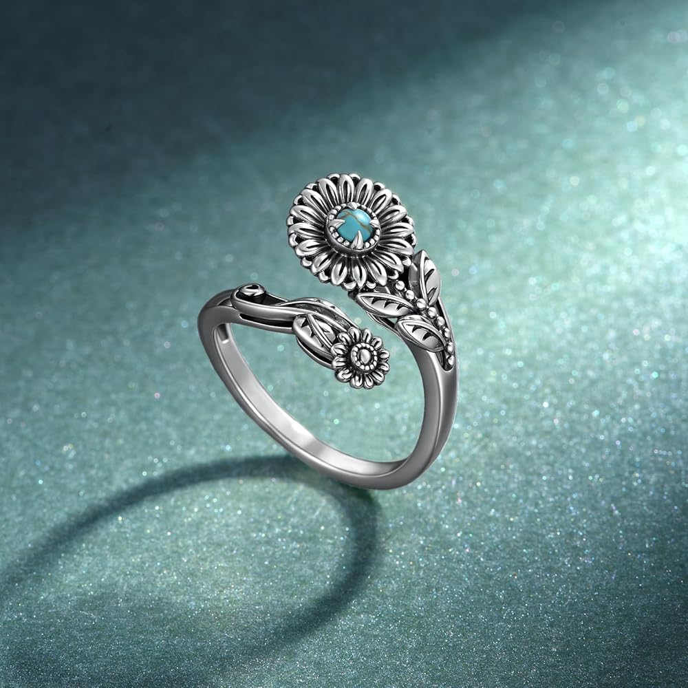 Real Turquoise Jewelry for Women: Come in a exiquisite gift box. This turquoise sunflower ring makes an ideal gift for special occasions such as birthdays, anniversaries, or mother's day. It's a thoughtful choice for those who appreciate Western jewelry for women and the timeless appeal of genuine turquoise.