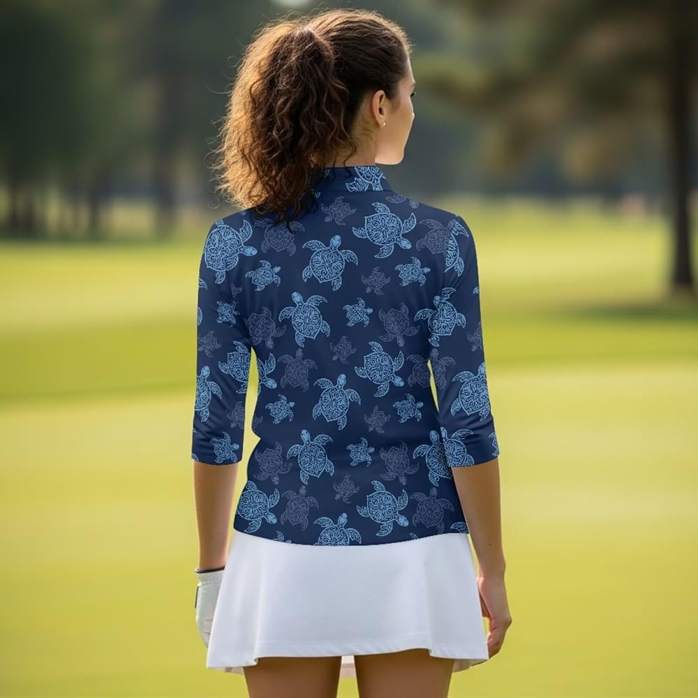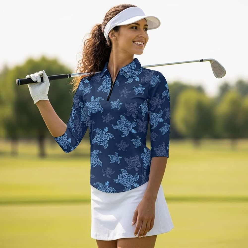 Kathyboom Women's V Neck 3/4 Sleeve Tops Quarter Zip Collared Shirts Polo Shirts, Women's V Neck 3/4 Sleeve Tops Quarter Zip Collared Shirts Polo Shirts, Running Clothing, Women's Polo Shirts, Women's Golf Shirts Size S-2XL