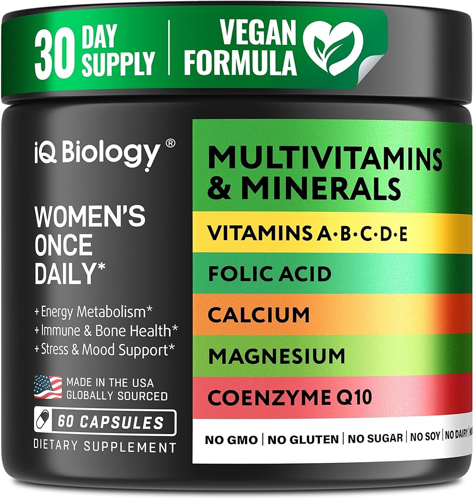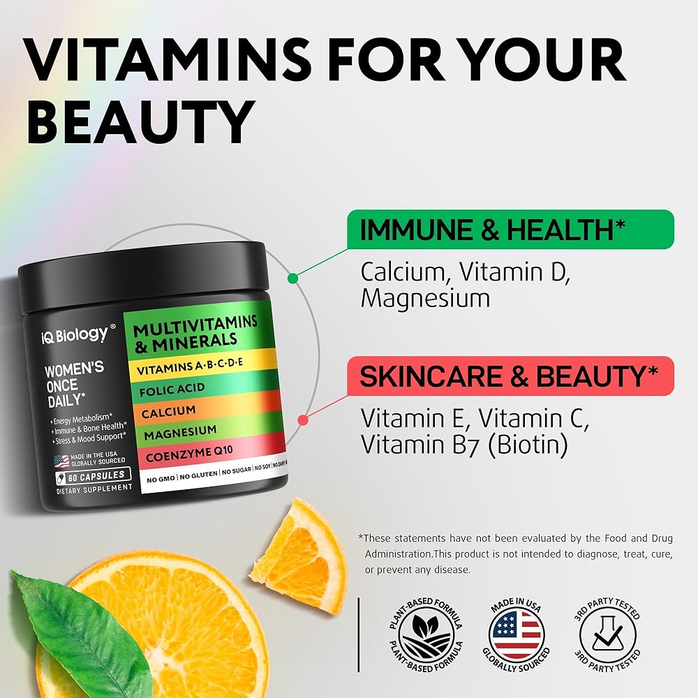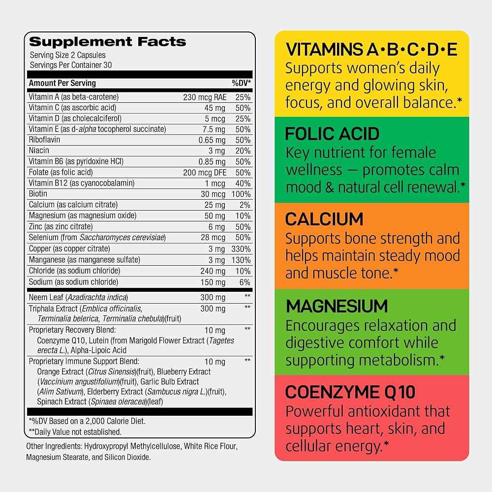 Daily Multivitamin Dose for Women - Vegan Women's Vitamins A B C D E and Zinc, Magnesium & Calcium Minerals - Complete Supplement for Energy & Immune Support - All-in-One for Female Health - 60 Caps