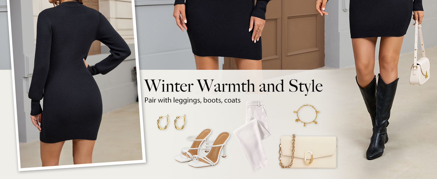 Fabric: The women's sweater dress is made of high-stretch knitted fabric, offering a soft, skin-friendly with a relaxed fit. Its lightweight warmth makes it perfect for fall through winter—keeping you cozy without bulk.