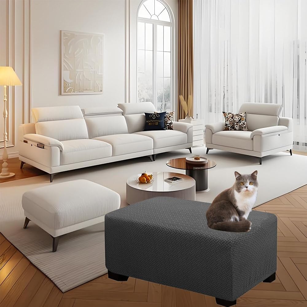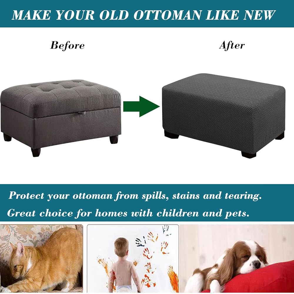EASY TO INSTALL AND CARE: Find 8 angles and put them in the position ensure the corners of the ottoman are well aligned to those of the slipcover for the seamless look. Full coverage showcase a brand new, longer-lasting ottoman stool.Wrinkle free. Machine washable for easy care and quickly-dry.