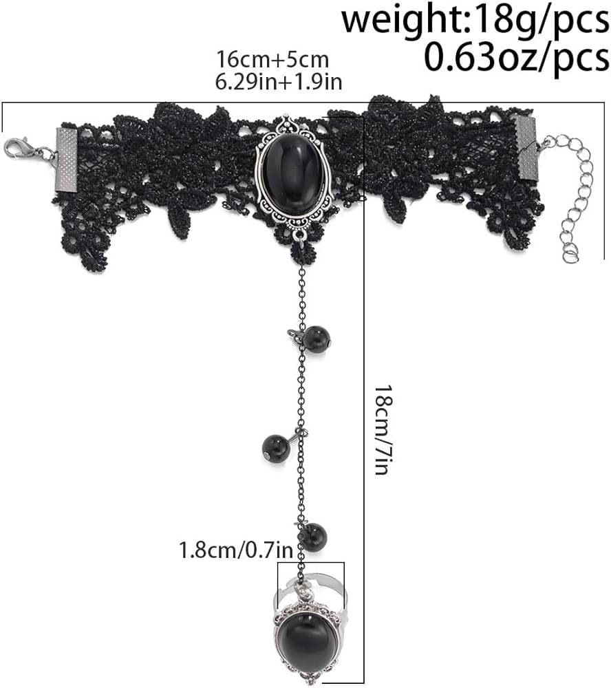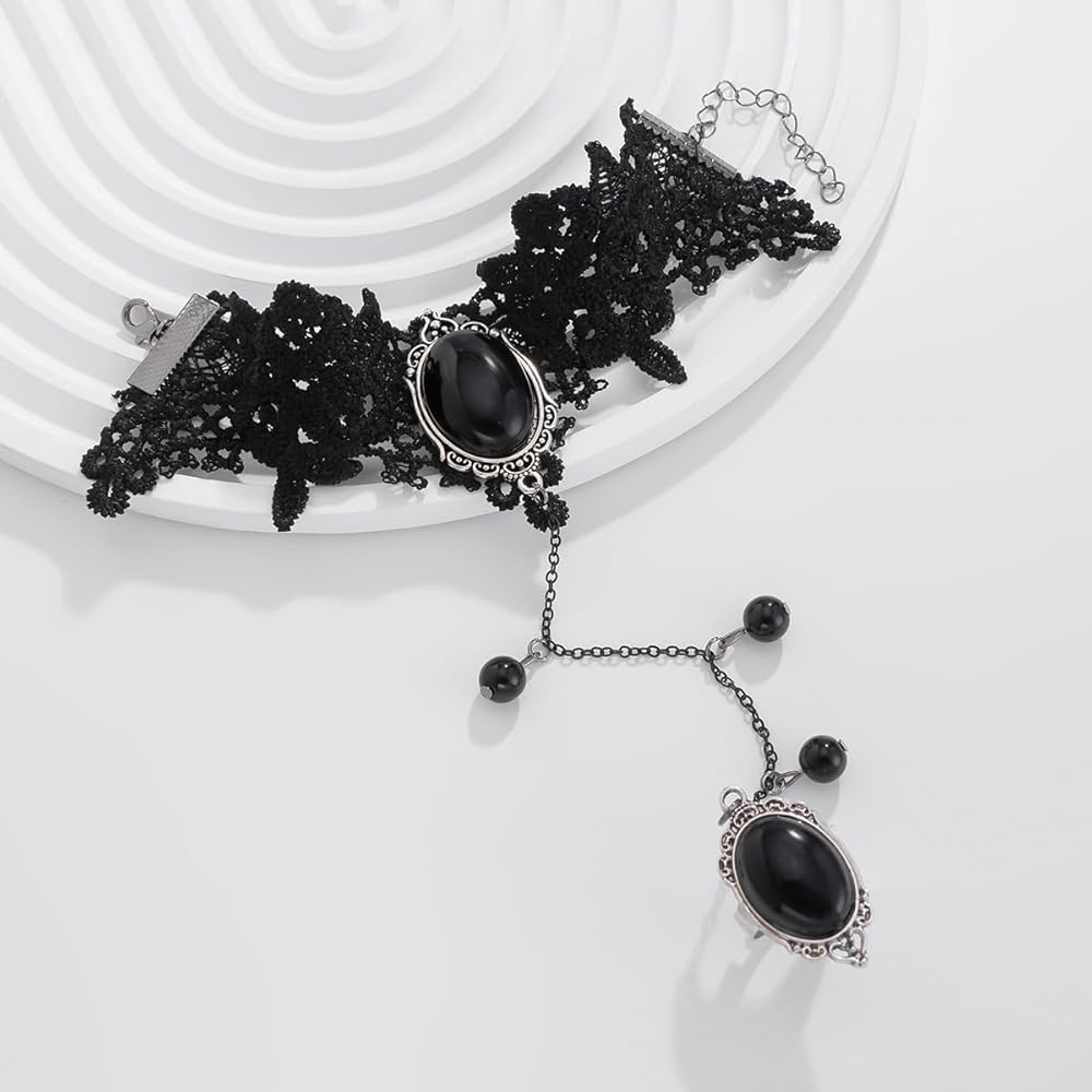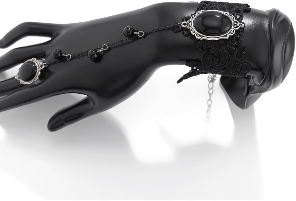 Embrace your dark and mysterious side with this captivating Gothic black lace bracelet. Crafted with intricate floral designs and a central gemstone, it exudes a seductive allure that will turn heads. The delicate chains and dangling beads add a touch of elegance, while the adjustable finger ring ensures a comfortable fit. Ideal for cosplay, parties, or any occasion where you want to channel your inner vampire or Lolita, this bracelet is a statement piece that will elevate your ensemble.