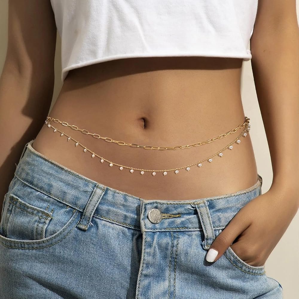 Waist Chain:You will get 1 set waist chain.Our layered body chains are made of high-quality alloy and pearls not easy to fade, suitable for daily wear.