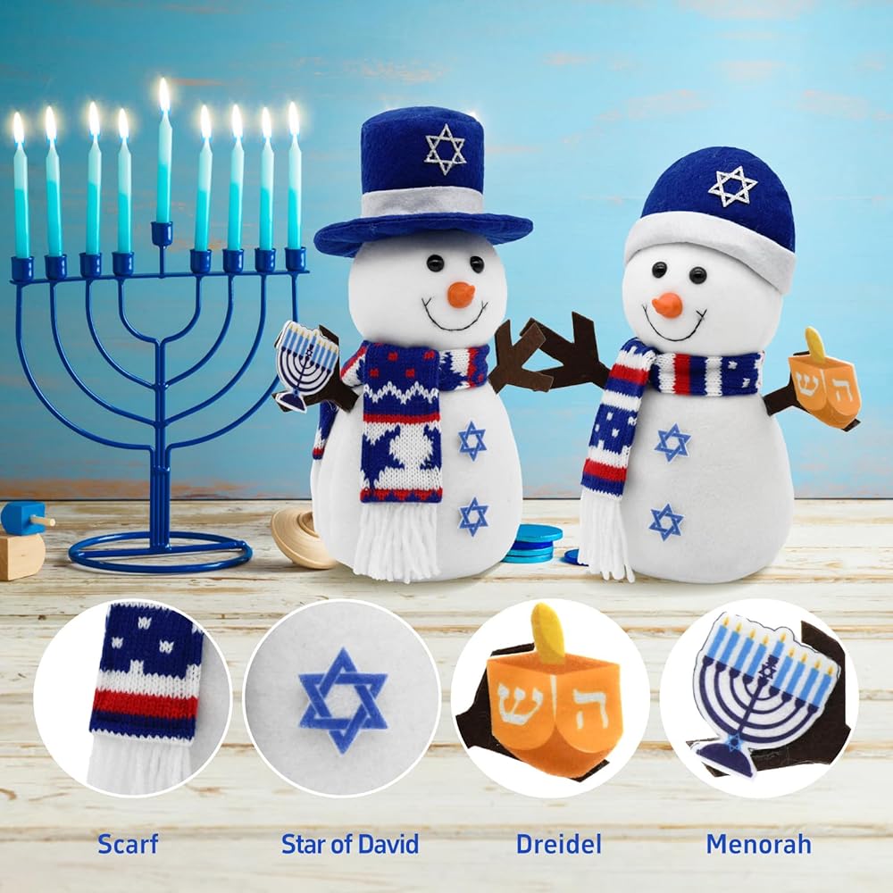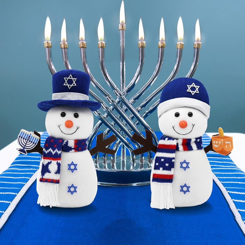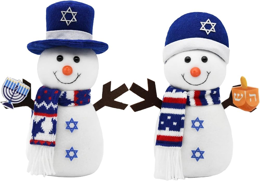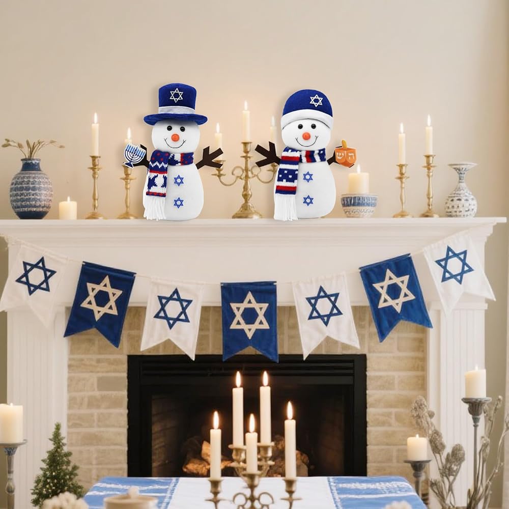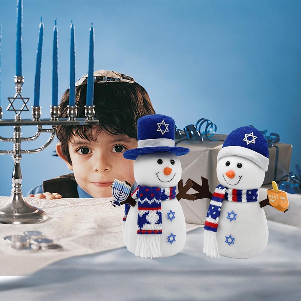 Hanukkah Decorations for Home Indoor, 2Pcs Snowman Plush Figurines with Menorah and Star of David, Jewish Gnomes Holiday Decor Chanukah Ornaments Shelf Table Display Gift Idea