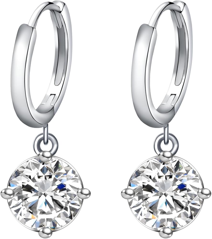 Moissanite Drop Earrings,1.0ct-2.0ct D Color VVS1 Round Cut Lab Created Diamond 925 Sterling Silver 18K White Gold Dangle Earrings For Women Moissanite Leverback Earrings