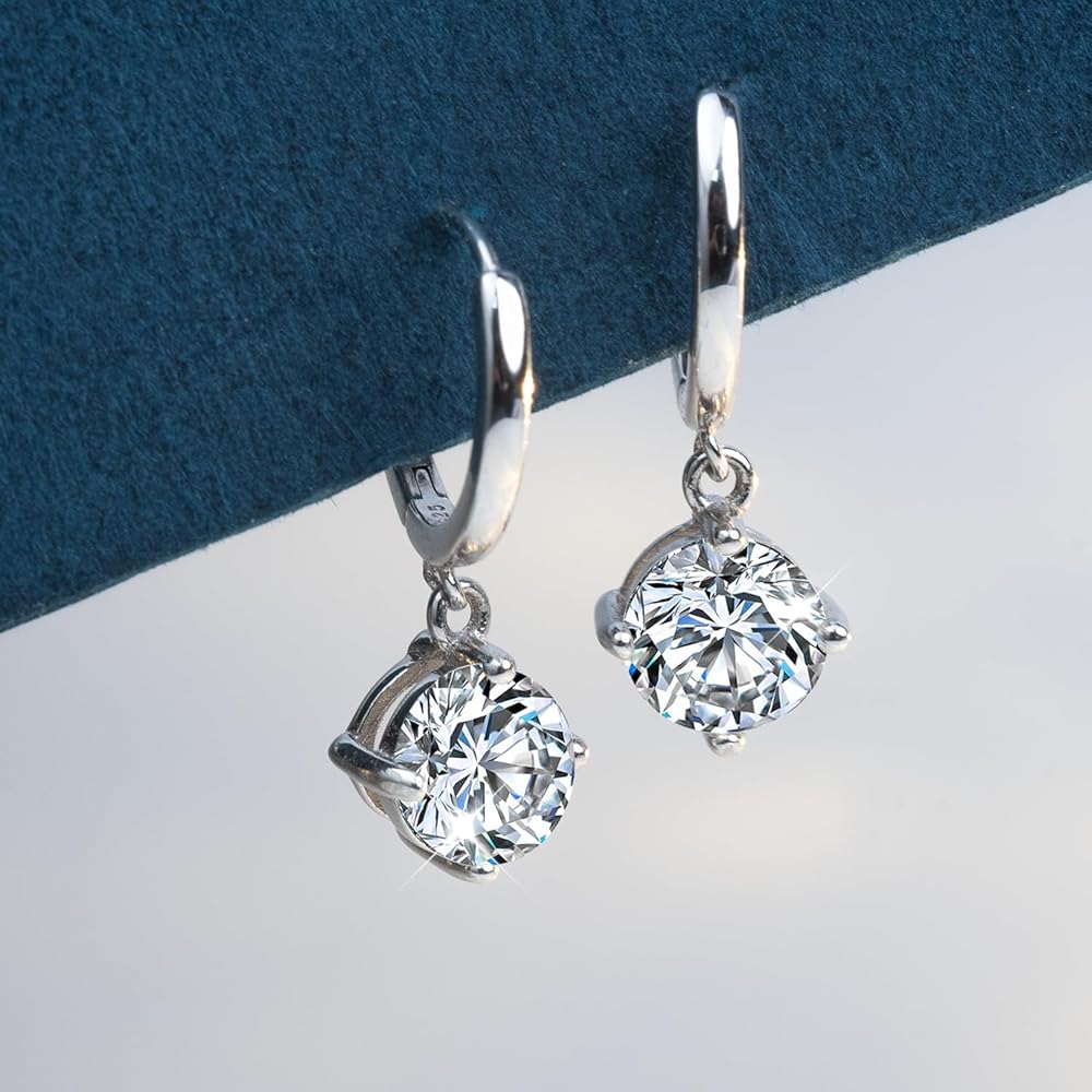 Moissanite Drop Earrings:The moissanite drop earrings for women made of D color VVS1 clarity brilliant round cut lab created moissanite ,D color grade make it looks more clear and shining that real diamond